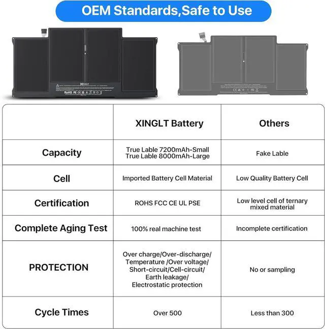 Newest Premium Grade Cells: XINGLT MacBook Air laptop replacement battery ensure fast charges and low power consumption. Built-in circuit protection ensures both safety and stability. (Life cycle: 3-5 years)