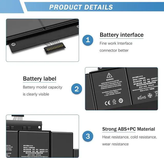 A1618 Battery for MacBook Pro 15'' Retina A1398 (Late 2013, Mid 2014, Early 2015)