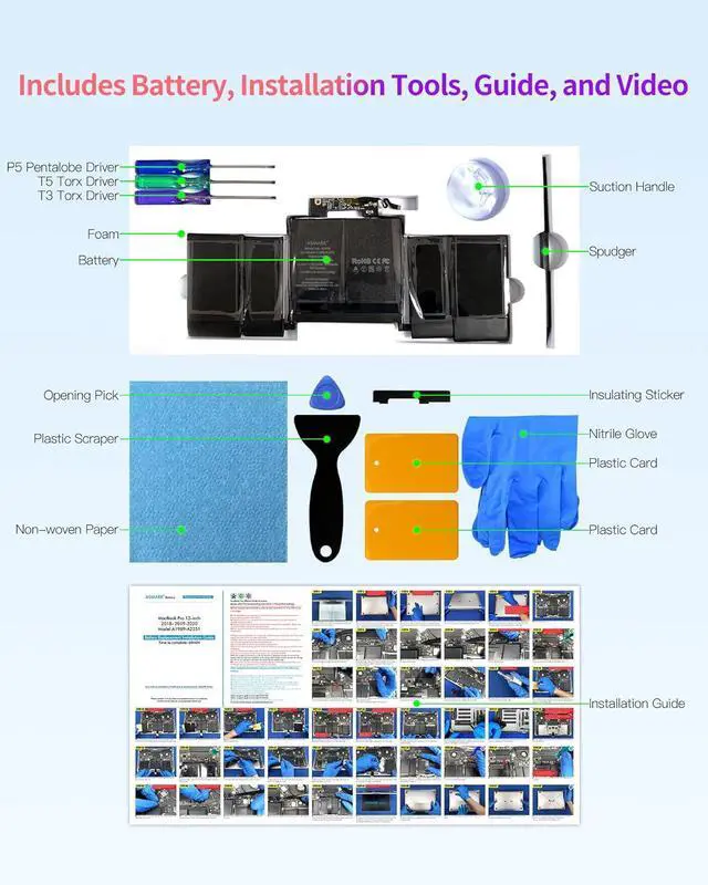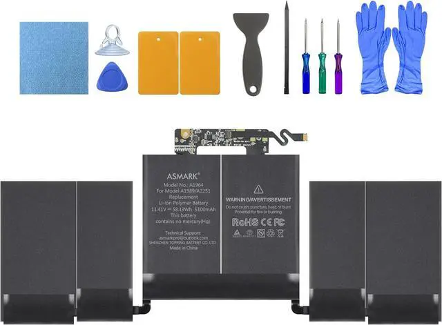 Battery ModelA1964Capacity5100 mAh 58.19 WhVoltage 11.41 VCompatibleMacBook Pro 13-inch 2018/2019/2020MacBook Model No. A1989/A2251Model IdentifierMacBookPro15, 2/MacBookPro16, 2EMC3214/3358/3348Part No. (2018) MR9Q2xx/A, MR9R2xx/A, MR9T2xx/A, MR9U2xx/A, MR9V2xx/APart No. (2019) MV962xx/A, MV972xx/A, MV982xx/A, MV992xx/A, MV9A2xx/APart No. (2020) MWP42xx/A, MWP52xx/A, MWP62xx/A, MWP72xx/A, MWP82xx/A
