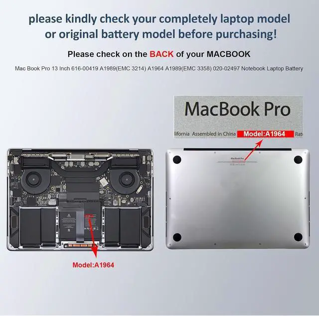 Fits for Laptop Model: MacBook pro 13 inch A1989 (Mid 2018, 2019) & A2251 (2020). Compatible Laptop/Notebook Model Details -- MacBook pro 13 inch A1989 (Mid 2018): MacBook Pro 13-Inch "Core i5" 2.3 Touch MacBookPro15,2 EMC3214 (MR9Q2xx/A, MR9R2xx/A, MR9T2xx/A, MR9U2xx/A, MR9V2xx/A) MacBook Pro 13-Inch "Core i7" 2.7 Touch MacBookPro15,2 EMC3214 (MR9Q2xx/A, MR9R2xx/A, MR9T2xx/A, MR9U2xx/A, MR9V2xx/A) 13" MacBook pro BATTERY A1989 A2251 -- A1964 Build high-quality batteries for you Give your computer multiple protections 13" MacBook pro BATTERY A1989 A2251 -- A1964 Easy & Quick Installation Grade "A" cells Top Quality Smart control Reassuring products