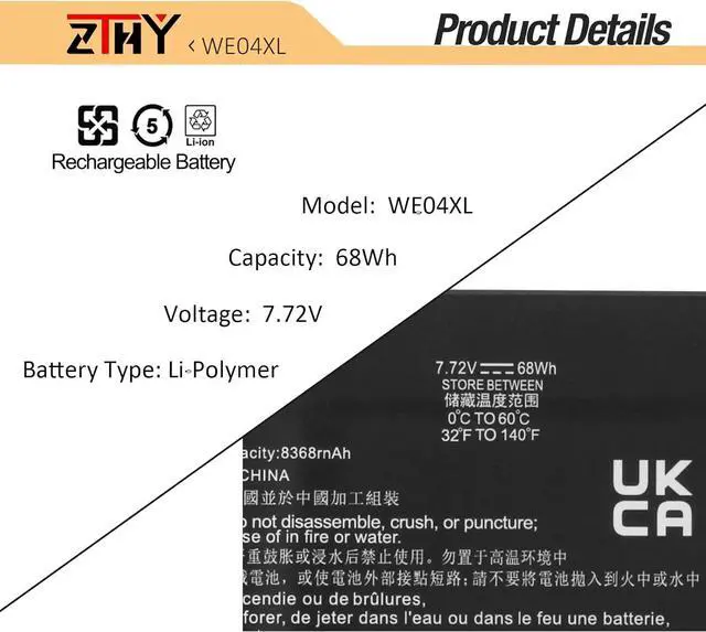 Compatible Part NumberWE04XL WE04068XL TPN-DB1Q HSTNN-WB0F N39817-2C1 N39817-2D1 N39817-CE1 N39817-CF1 N39857-005Compatible ModelReplacement for HP Pavilion Plus 14-ew Series: 14-ew0000 14-ew0153TU 14-ew1001nf 14-ew1010nrCompatible ModelReplacement for HP Pavilion Plus 14-ey Series: 14-ey0000 14-ey0000AU 14-ey0000NA 14-ey0000NS 14-ey0000SL 14-ey0001NO 14-ey0002NO 14-ey0003AU 14-ey0003NL 14-ey0004NF 14-ey0000NA 14-ey0001NO 14ey0003AU 14-ey0003NL 14-ey0004NN 14-ey0005AU 14-ey0011AU 14-ey0013DX 14-ey0015AU 14-ey0021NO 14-ey0025ND 14-ey0028AU 14-ey0037AU 14-ey0044AU 14-ey0095cl 14-ey0710NDCompatible ModelReplacement for HP X360 Spectre 14-eu Series: 14-eu0004nf 14-eu0005nf 14-eu0006nf 14-eu0078ng 14-eu0097nf 14-eu0098nfCompatible ModelReplacement for HP Spectre x360 2-in-1 14t-eu000 Series;Compatible ModelReplacement for Pavilion Plus 14t-ew000 14t-ew100 Series;Compatible ModelReplacement for Pavilion Plus 14z-ey100 14z-ey100 Series;Compatible ModelReplacement for HP Pavilion Plus 16-AB0XXX Series: 16-ab0000TU 16-ab0000TX 16-ab0004TU 16-ab0004TX 16-ab0008TU 16-ab0008TX 16-ab0010TU 16-ab0010TX 16-ab0001NF 16-ab0003TX 16-ab0007NL 16-ab0007TX 16-ab0009TX 16-ab0010NN 16-ab0011NN 16-ab0012NB 16-ab0014TX 16-ab0024NB 16-ab0970NDCompatible ModelReplacement for HP Pavilion Plus 90N29PA 90N32PA 90N38PA 90N45PA 90N49PA 90N62PA 93T28PA 95S65PA Series;Compatible ModelReplacement for HP PAVILION PLUS 16T-AB000 Series;Compatible ModelReplacement for HP Envy x360 16-AC0XXX Series: 16-AC0000TU 16-AC0001TU 16-AC0010TU 16-AC0017TU 16-AC0018TU 16-AC0020TU 16-AC0023TU 16-AC0027TU 16-AC0033DX 6-AD0007AUCompatible ModelReplacement for HP Envy x360 16-ad 16-ad0007AU Series;Compatible ModelReplacement for HP Envy X360 2-in-1 16-ad0097nr Series;Compatible ModelReplacement for HP Envy X360 9S1R9UA 9V7D9PA 9V7N1PA 9W639PA 9W677PA 9X2S6PA A01HYPA A01J1PA A19Y6PA A1KX1PA Series.NoteIf you install the battery, you find that the laptop cannot detect the battery or the battery level cannot be displayed normally. Please check whether the battery cable is installed properly. Sometimes the battery cannot be charged because the cable is not fixed properly. What do I need to be aware of when I receive a battery?