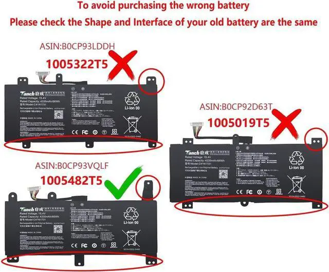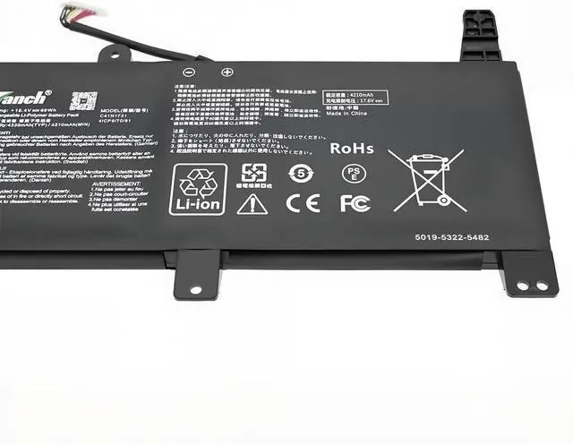 Compatible battery partno:ASUS C41N1731C41N1731-2Applicable laptop models:ASUS ROG Strix Scar IIIROG Strix Scar III PlusROG Strix Scar IVROG Strix Scar IV PlusROG Strix G712/G712LWS/ G712LV/G712LU/G712LW ROG Strix G531GW/G731GW/G531GU/G531GV ROG Strix G731GU/G731GV ROG Strix G512LV......+(S5D) S5DW9750-0EAAXHA8X20/S5DV9750-0EAAXHA6X20(S7D) S7DW9750/(G731G) G731GW-EV094(S5D) S5DU9750-0DADXHA6X20/S5DU9300-0D8DXHA6X20 (S7D) S7DV9750-0EACXHA6X20/S7DU9750-0EACXHA6X20(G512L) G512LV10875/G512LV10870 ROG (G712L) G712LW10875/G712LV10875(G532L) G532LWS10875-0EAAXHA8X20 (G732L) G732LXS10980/G732LWS10875......+This laptop battery is compatible with many models, and only part of them are listed here. If you don't see your model, please feel free to check with us for confirmation We pledge that every battery undergoes rigorous quality inspections before leaving the factory, ensuring that each one can be used safely and reliably.