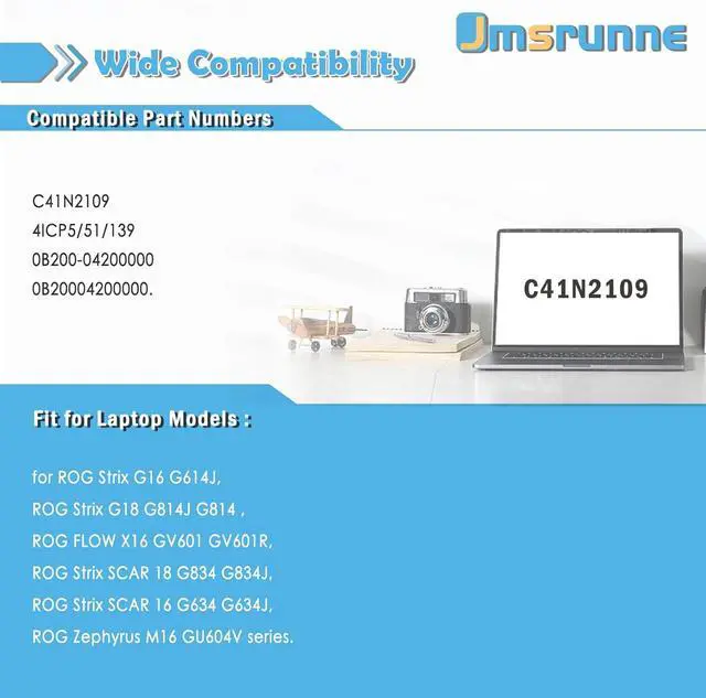 C41N2109 battery Compatible laptop Modelsfor ROG Strix G16 G614J, ROG Strix G18 G814J G814 , ROG FLOW X16 GV601 GV601R, ROG Strix SCAR 18 G834 G834J,ROG Strix SCAR 16 G634 G634J, ROG Zephyrus M16 GU604V series.