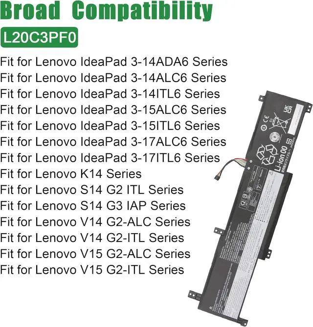 Compatible Models: Fit for Lenovo IdeaPad 3-14ADA6 3-14ALC6 3-14ITL6 3-15ALC6 3-15ITL6 3-17ALC6 3-17ITL6 // K14 // S14 G2 ITL // S14 G3 IAP // V14 G2-ALC // V14 G2-ITL // V15 G2-ALC // V15 G2-ITL Series.