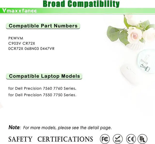 Compatible laptop Modelsfor Dell Precision 7550 7560 Mobile Workstation Series, Dell Precision 7750 7760 Mobile Workstation Series, Dell P44E P93F P44E001 P44E002 P93F001 P93F002.