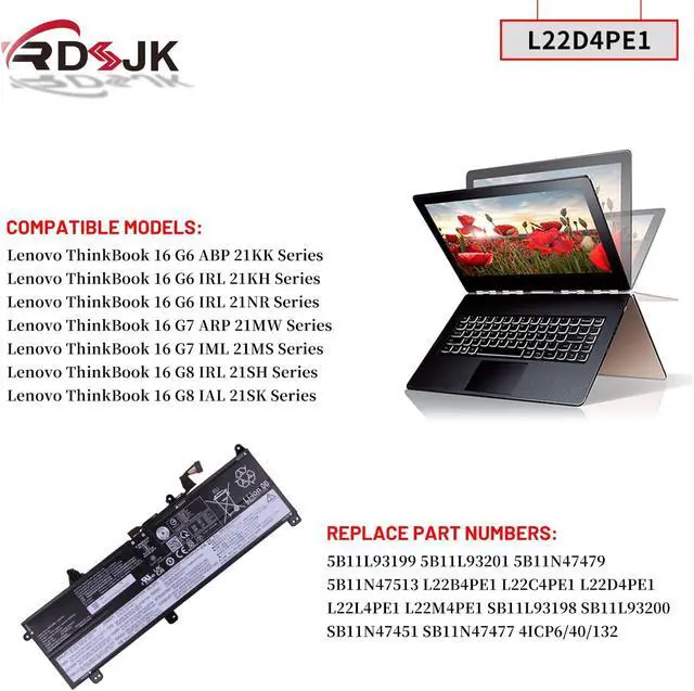 Compatible Models: Replacement for Lenovo ThinkBook 16 G6 ABP 21KK Series; for Lenovo ThinkBook 16 G6 IRL 21KH 21NR Series; for Lenovo ThinkBook 16 G7 ARP 21MW Series; for Lenovo ThinkBook 16 G7 IML 21MS Series; for Lenovo ThinkBook 16 G8 IRL 21SH Series; for Lenovo ThinkBook 16 G8 IAL 21SK Series