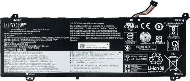 SpecificationsBattery Model: L19C4PDB / Voltage: 15.44V / Capacity: 60Wh 3912mAh 4-Cell / Color: Black / Condition: Brand New.