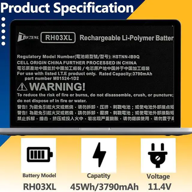 SpecificationsModel: RH03XL Capatity: 45Wh/3790 Voltage:11.4V Battery type: Rechargeable Battery Color: Black 100% brand New from Manufacturer.