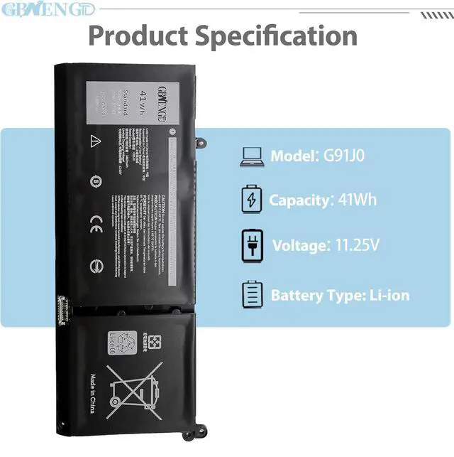 Specifications Model: G91J0 Capatity: 41Wh Voltage:11.25V Color: Black Battery type: Rechargeable Li-ion Battery Condition: 100% brand New from Manufacturer.