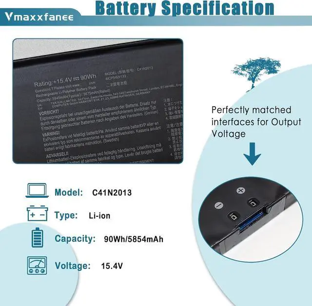 Specifications Model: C41N2013 . Voltage: 15.4V. Capacity: 90Wh/5854mAh . Cells:4-cells; Color: Black Condition: 100% brand New .