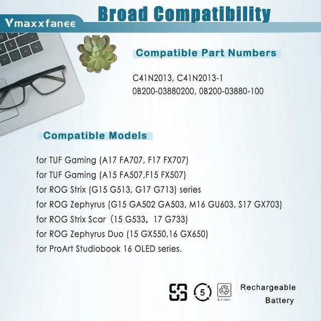 Compatible Laptop Modelsfor TUF Gaming (A17 FA707, F17 FX707) , for TUF Gaming (A15 FA507,F15 FX507) , ROG Strix (G15 G513, G17 G713) seriesROG Zephyrus (G15 GA502 GA503, M16 GU603, S17 GX703) , ROG Strix Scar15 G53317 G733),ROG Zephyrus Duo (15 GX550,16 GX650), ProArt Studiobook 16 OLED series.