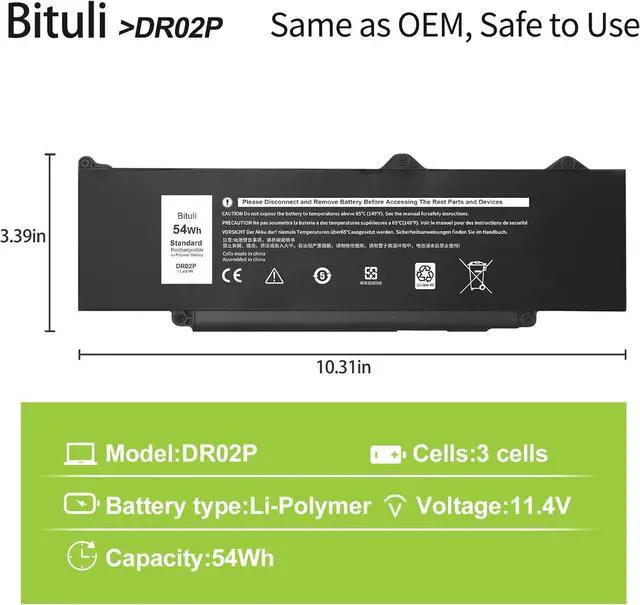 Replacement Battery TypeDR02P Battery Type: lithium_ion Voltage: 11.4V Capacity: 54WH ; Cells: 3-cell; Color: Black, This battery provide the same battery life as the original,We are a professional laptop battery manufacturer,We only provide the best quality batteries to ensure the best possible buying experience for our customers