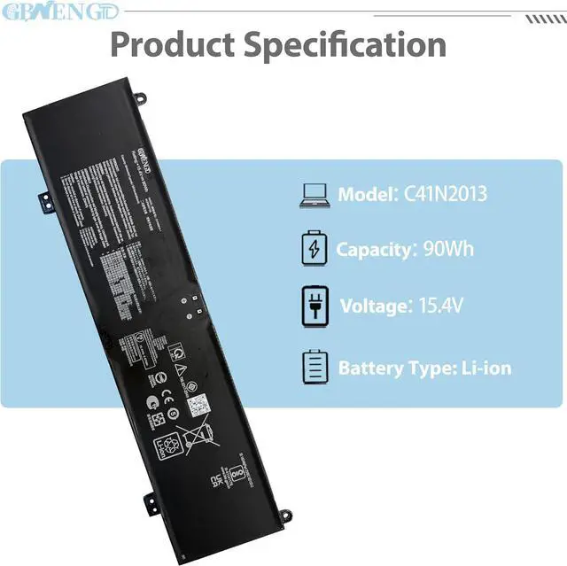 Specifications Model: C41N2013 Capatity: 90Wh Voltage:15.4V Color: Black Battery type: Rechargeable Li-ion Battery Condition: 100% brand New from Manufacturer.