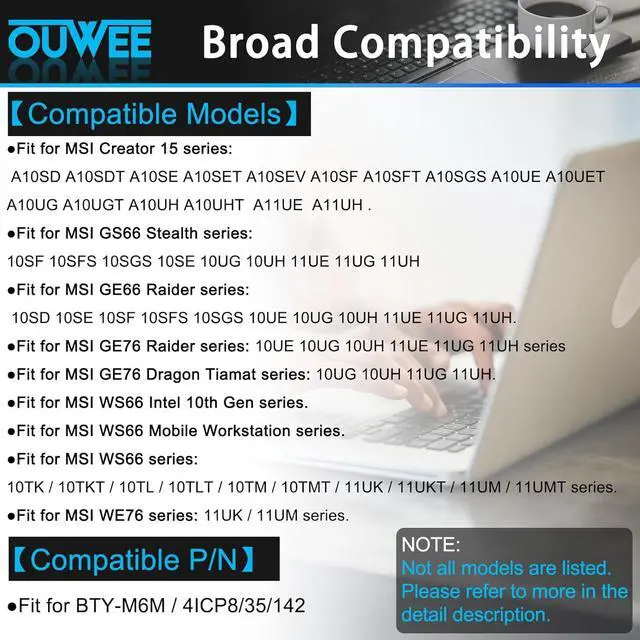Fully compatible and high stabilityFit for MSI Creator 15 Series,For MSI GS66 Stealth Series,For MSI GE66 Raider Series ,For MSI GE76 Dragon Tiamat Series ,For MSI WS66 Intel 10th Gen Series,For MSI WS66 Mobile Workstation Series ,For MSI WS66 Series ,For MSI WE76 Series Laptop