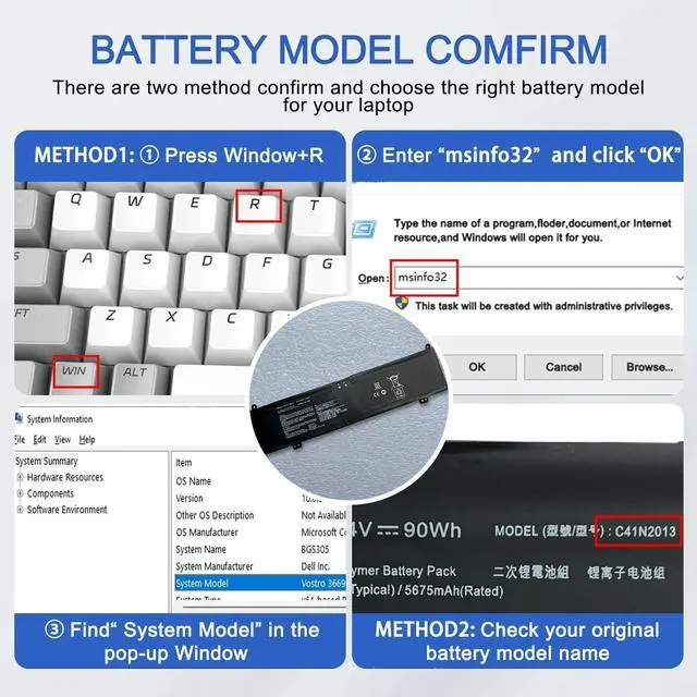 SpecificationsBattery Model :C41N2013 Voltage: 15.4V; Capacity:90Wh 5675mAh; Battery Type:Lithium ion