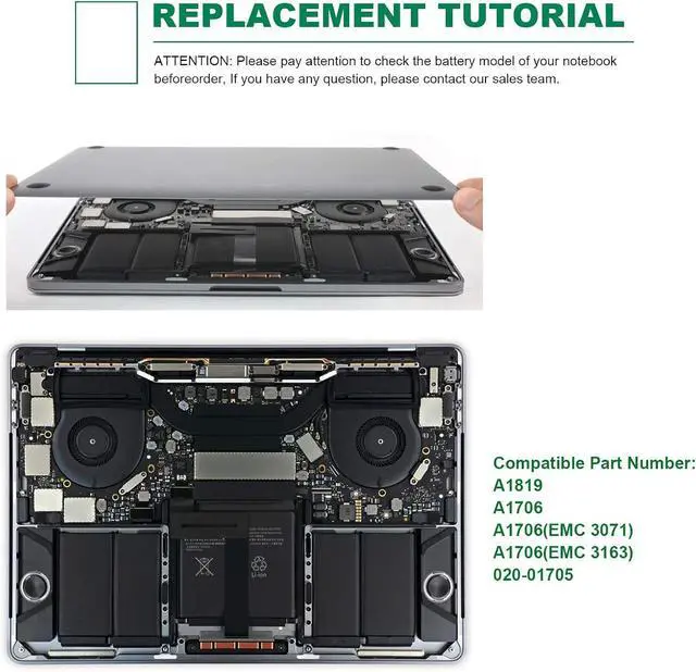 Compatible Part NumberA1819 A1706 A1706 (EMC 3071) A1706 (EMC 3163) 020-01705