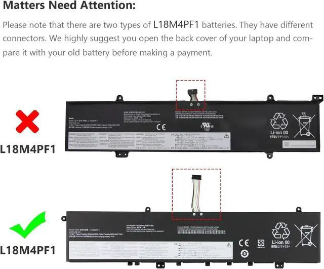 Compatible Part Number: L18D4PF1 L18M4PF1 5B10U65277 5B10U65276 5B10W67244 SB10W67267 5B10T83738 5B10W67392 5B10W69461 (Note: L18D4PF1 has two different designs, and they are suitable for different machines. Please open the back cover of your laptop before purchasing to make sure that the model you purchased is consistent with the picture.)