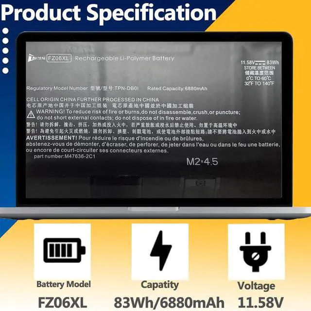 Compatible C/NFZ06XL,FZ06083XL,TPN-DB0I,M48025-005,M47636-2C1,M47636-2D1,31CP7/52/58-2.