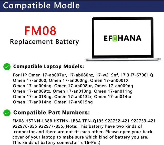 Compatible with Laptop ModelsFit for HP Omen 17-ab007ur, 17-ab080nz, 17-w219nf, 17.3 i7-6700HQ, Omen 17-an000, Omen 17-an000ng, Omen 17-an000TX, Omen 17-an004ng, Omen 17-an008ur, Omen 17-an009ng, Omen 17-an009tx, Omen 17-an010ng, Omen 17-an011ng, Omen 17-an013ng, Omen 17-an013tx, Omen 17-an014tx, Omen 17-an014ng, Omen 17-an015ng.