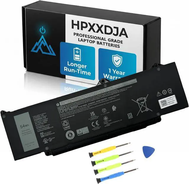 BATTERY SPECIFICATIONS: DR02P battery for Dell. Battery Type: Li-ion. Capacity: 54 Wh 4623 mAh. Voltage: 11.4 V. WHAT YOU GET: 1 * DR02P battery. 1 * User Manual. 4 * Screwdrivers