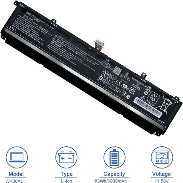 SpecificationsBattery Model :WK06XL;Product Type: Replacement battery; Battery Type: Li-ion; Voltage: 11.58V; Capacity: 83Wh/6880mAh; Battery Life: Up to 500 recharge cycles over the life of the battery