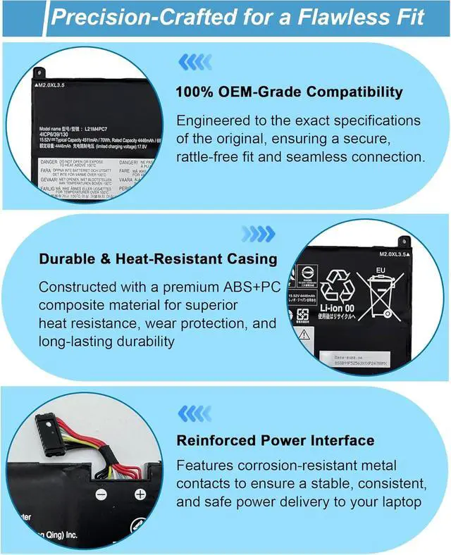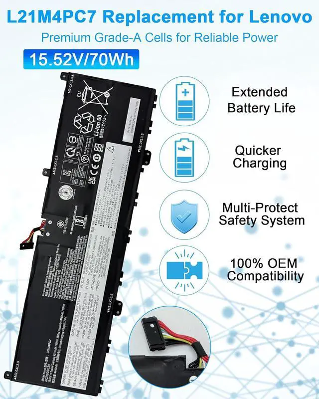 Specifications: Model Name: L21M4PC7 standard Rechargeable Li-ion Battery; Battery Type: Lithium_ion; Voltage: 15.52 V; Capacity: 70 Wh 4511 mAh. Color: Black. Packages includes:1x L21M4PC7 Laptop Battery, 2 x Screwdrivers for easy installation, 1x Instruction