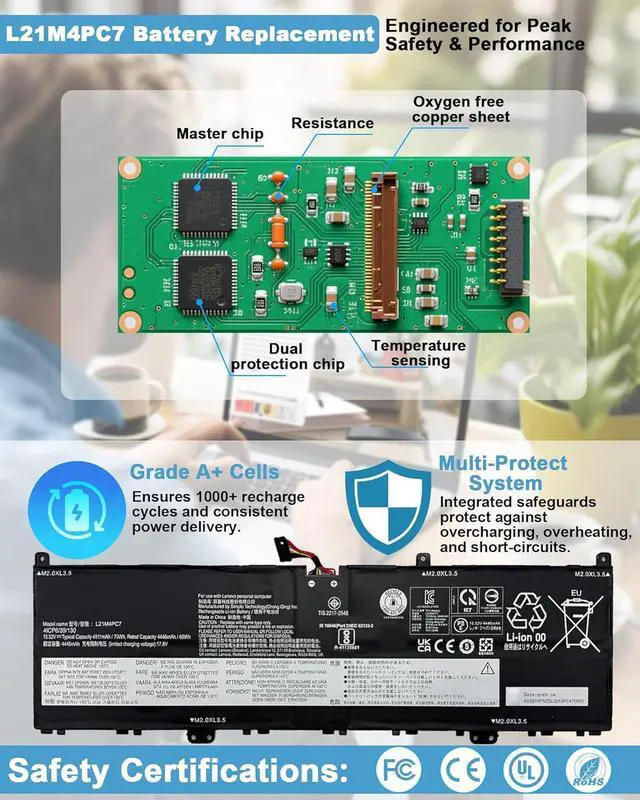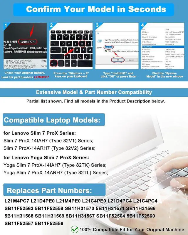 Compatible Laptop Models: Replacement for Lenovo Slim 7 ProX-14IAH7 (Type 82V1) Series; Replacement for Lenovo Slim 7 ProX-14ARH7 (Type 82V2) Series; Replacement for Lenovo Yoga Slim 7 ProX-14IAH7 (Type 82TK) Series; Replacement for Lenovo Yoga Slim 7 ProX-14ARH7 (Type 82TL) Series