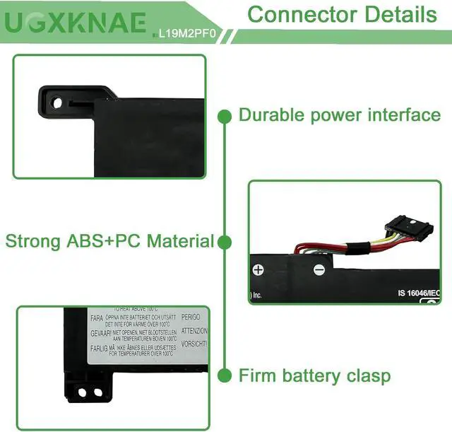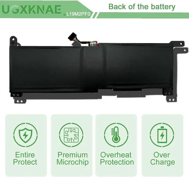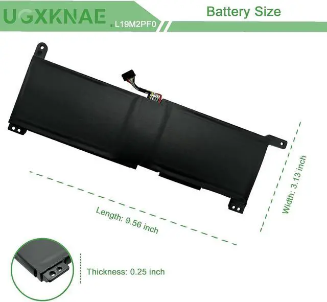 Specifications: Model Name: L19M2PF0 Battery; Battery Type: Li-ion ; Voltage: 7.5 V; Capacity: 35 Wh 4670 mAh.Cells: 2-cells; Color: Black. Packages includes:1x L19M2PF0 Laptop Battery, 2 x Screwdrivers for easy installation,1x Instruction