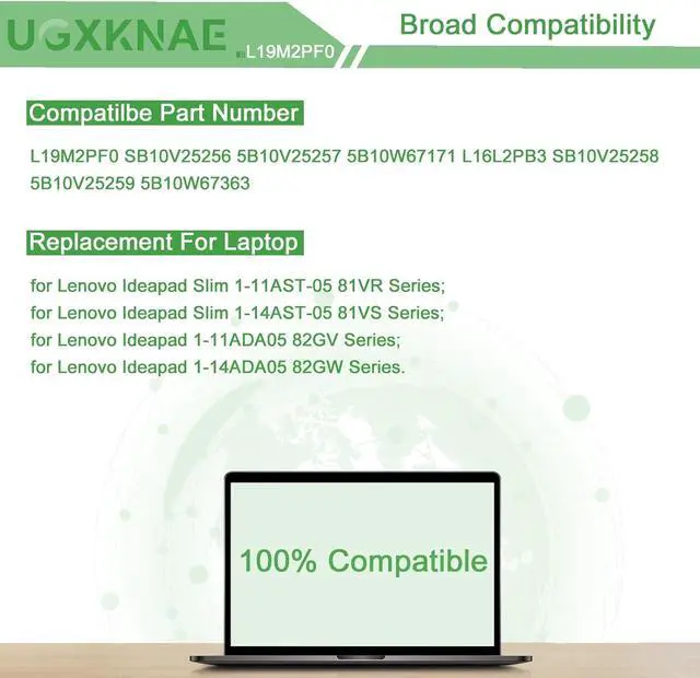 Compatible Laptop Models: Replacement for Lenovo Ideapad Slim 1-11AST-05 81VR Series; for Lenovo Ideapad Slim 1-14AST-05 81VS Series; for Lenovo Ideapad 1-11ADA05 82GV Series; for Lenovo Ideapad 1-14ADA05 82GW Series
