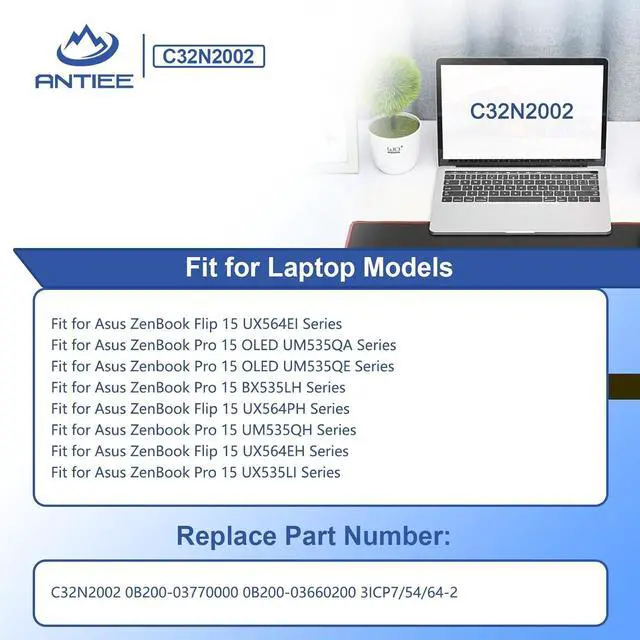 Compatible Laptop ModelsFit for Asus ZenBook Pro 15 UX535 Series, Fit for Asus ZenBook Pro 15 UX535LI Series, Fit for Asus ZenBook Pro 15 UX564PH Series, Fit for Asus ZenBook Flip 15 UX535LI Series, Fit for Asus ZenBook Flip 15 UX564 Series, Fit for Asus ZenBook Flip 15 UX564EH Series, Fit for Asus ZenBook Flip 15 UX564EI Series, Fit for Asus ZenBook Flip 15 UX564PH Series, Fit for Asus ZenBook Pro 15 BX535LH Series, Fit for Asus ZenBook Pro 15 BX535LH-BO070R BX535LH-BO171R BX535LH-BO240R BX535LH-BN143R, Fit for Asus ZenBook Pro 15 OLED UM535QA Series, Fit for Asus ZenBook Pro 15 OLED UM535QA-KJ191 UM535QA-KY204W UM535QA-KY236W UM535QA-KY306W UM535QA-KY310W UM535QA-KY212WS UM535QA-KY213WS