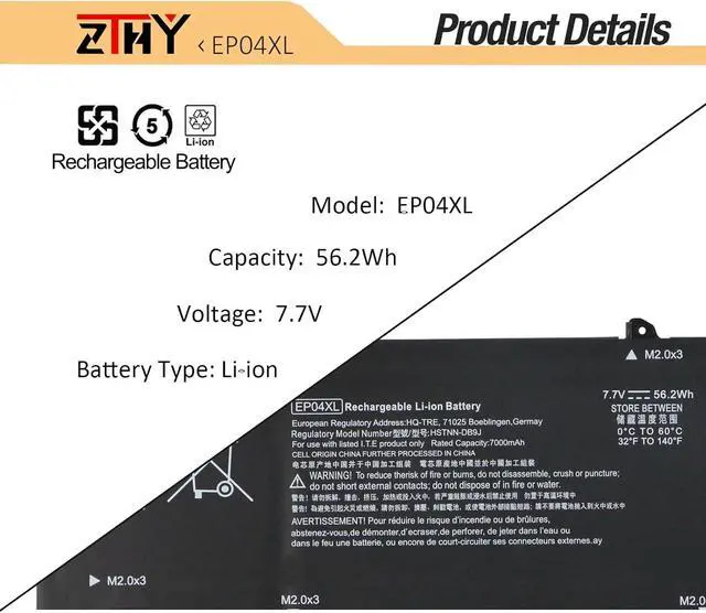Compatible Part Number: EP04XL EP04056XL EP04056XL-PL HSTNN-DB9J HSTNN-IB8Y L52448-1C1 L52448-241 L52581-005 996QA155H