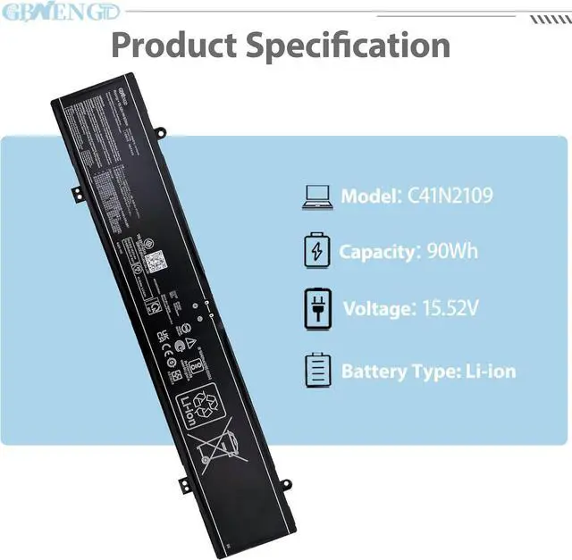 Specifications Model: C41N2109 Capatity: 90Wh Voltage:15.52V Color: Black Battery type: Rechargeable Li-ion Battery Condition: 100% brand New from Manufacturer.