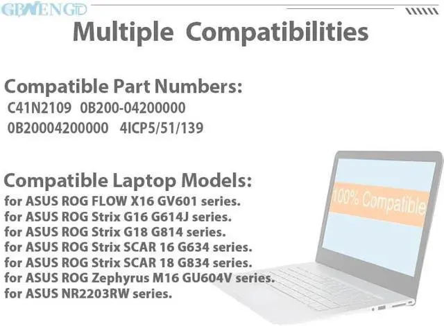 Compatible Model for ASUS ROG FLOW X16 GV601 series. for ASUS ROG Strix G16 G614J series. for ASUS ROG Strix G18 G814 series. for ASUS ROG Strix SCAR 16 G634 series. for ASUS ROG Strix SCAR 18 G834 series. for ASUS ROG Zephyrus M16 GU604V series. for ASUS NR2203RW series.
