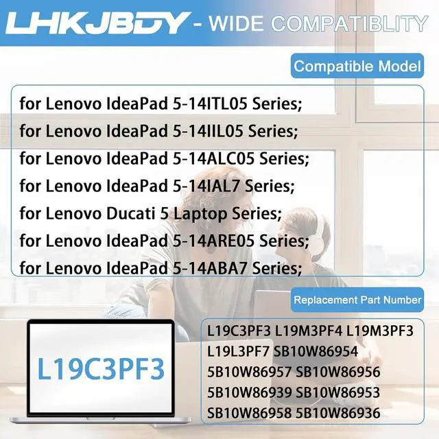 Compatible Laptop Models: L19C3PF3 battery for Lenovo IdeaPad 5-14ALC05 Series, L19C3PF3 battery for Lenovo IdeaPad 5-14ARE05 Series, L19C3PF3 battery for Lenovo IdeaPad 5-14ITL05 Series notebook