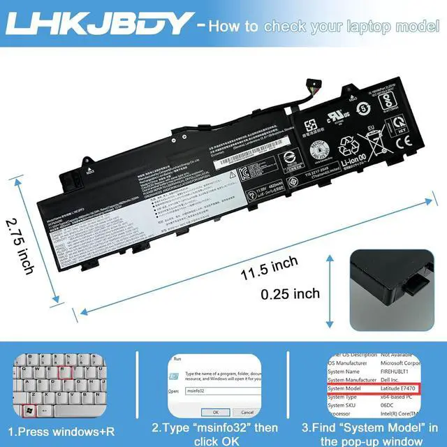 Specifications: Type: L19C3PF3; Voltage: 11.55V; Capacity: 4965mAh/56.5Wh; Color: Black. Battery type: Lithium-Ion; The Packages includes: 1pcs L19C3PF3 Laptop Battery Replacement, 2pcs Screwdrivers, 1 pcs Instruction for L19C3PF3 Battery. The batteries are certified by UL and CE, ensuring safety and high performance