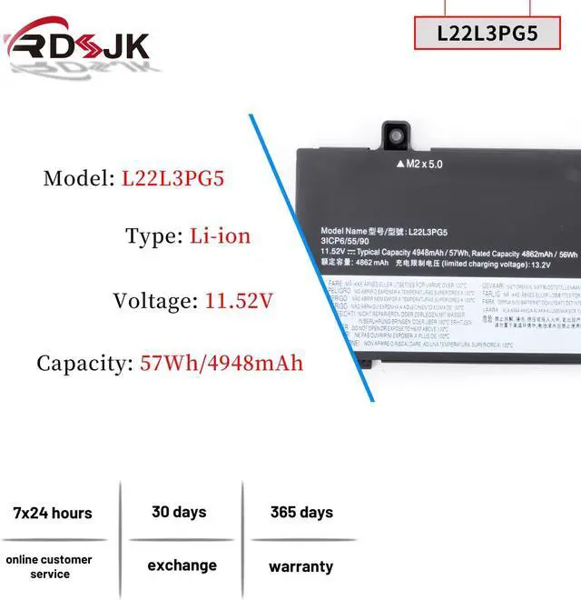 There are 2 different batteries L22B3PG5 57Wh and L22B3PG4 47Wh, please open back of your laptop to confirm your battery before purchasing!
