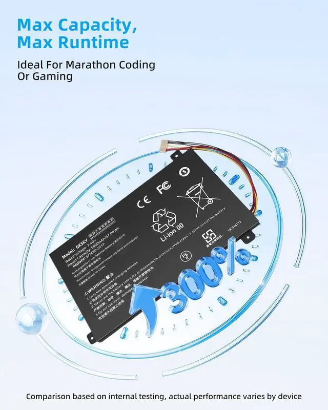 SPECIFICATION : Model Name:577480-2S1P Voltage: 7.4V / Capacity: 37Wh 5000mAh Grade A cells ensure fast charges and low power consumption; Built-in circuit protection ensures both safety and stability. Condition: 100% New; Battery life: More than 1000 cycles.