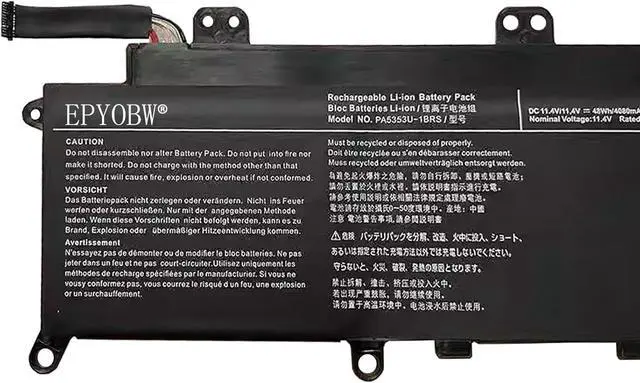 Specifications Battery Model: PA5353U-1BRS/ Voltage: 11.4V / Capacity: 48Wh 4080mAh 3-Cell / Color: Black / Condition: Brand New.