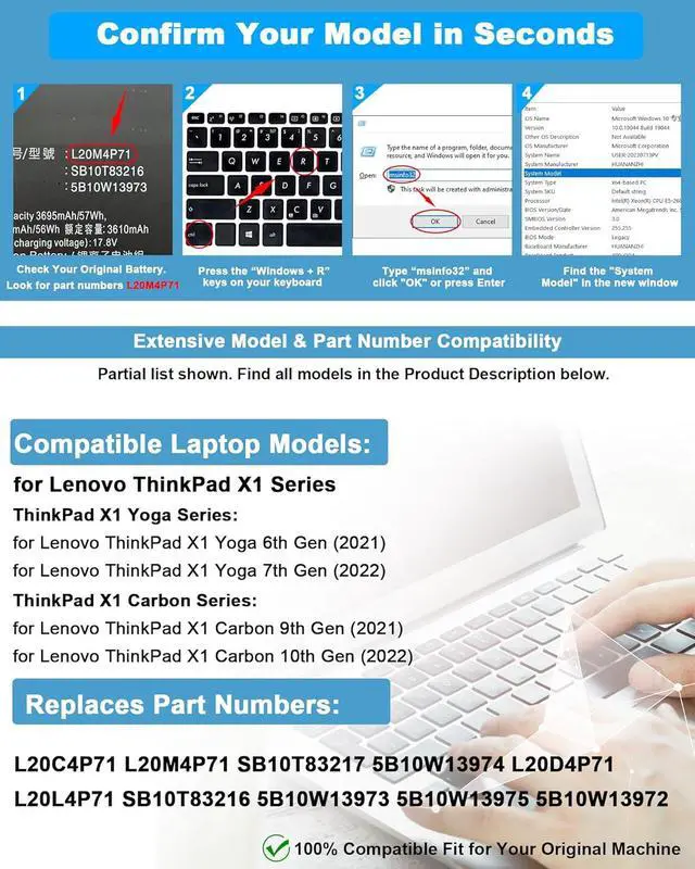 Compatible Laptop Models: Replacement for Lenovo ThinkPad X1 Yoga 6th Gen (X1 Yoga 2021) Series; fit for Lenovo ThinkPad X1 Yoga 7th Gen (X1 Yoga 2022) Series; fit for Lenovo ThinkPad X1 Carbon 9th Gen (X1 Carbon 2021) Series; fit for Lenovo ThinkPad X1 Carbon 10th Gen (X1 Carbon 2022) Series