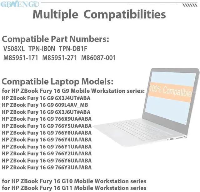 Compatible Modelfor HP ZBook Fury 16 G9 Mobile Workstation series: HP ZBook Fury 16 G9 6X3J4UT#ABA HP ZBook Fury 16 G9 609L4AV_MB HP ZBook Fury 16 G9 6X3J6UT#ABA HP ZBook Fury 16 G9 766X9UA#ABA HP ZBook Fury 16 G9 766Y5UA#ABA HP ZBook Fury 16 G9 766Y0UA#ABA HP ZBook Fury 16 G9 766Y4UA#ABA HP ZBook Fury 16 G9 766Y1UA#ABA HP ZBook Fury 16 G9 766Y2UA#ABA HP ZBook Fury 16 G9 766Y6UA#ABA HP ZBook Fury 16 G9 766Y3UA#ABA for HP ZBook Fury 16 G10 Mobile Workstation series for HP ZBook Fury 16 G11 Mobile Workstation series