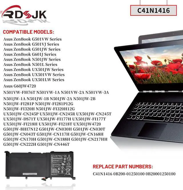 Compatible Models: Fit for Asus ZenBook Pro G501 G601J UX501J UX501L UX501VW N501L UX501J Series; Fit for Asus ZenBook Pro G501VW G501VJ G501JW N501JW N501L UX501JW UX501LW Series; Fit for Asus N501JW-1A N501JW-1B N501JW-2A N501JW-2B G60JW4720 UX501JW-CN245P UX501JW-CN245R UX501JW-CN245T UX501JW-DS71T UX501JW-FI177H UX501JW-FI177T UX501JW-FI218H UX501JW-FI218T UX501JW4720 G501JW-BHI7N12 G501JW-CN030H G501JW-CN030T G501JW-CN043T G501JW-CN117H G501JW-CN168H G501JW-CN170H G501JW-CN188H G501JW-CN217HH G501JW-CN222H G501JW-CN446T