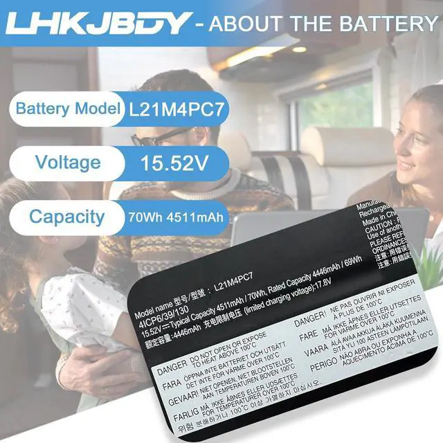 Specifications: Type:L21M4PC7; Voltage: 15.52V; Capacity: 4511mAh/70Wh; Color: Black. Battery type: Lithium-Ion; The Packages includes: 1pcsL21M4PC7 Laptop Battery Replacement, 2pcs Screwdrivers, 1 pcs Instruction forL21M4PC7 Battery. The batteries are certified by UL and CE, ensuring safety and high performance