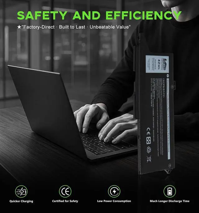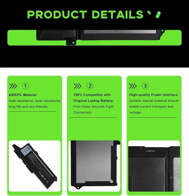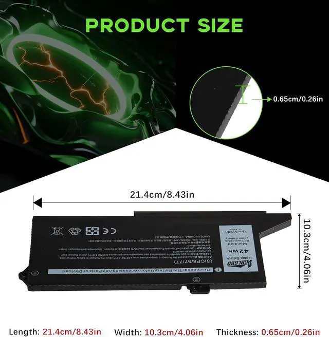 Specifications: Replacement Battery WY9DX for Dell, Voltage: 11.4V, Capacity: 42Wh 3684mAh, 3-Cell. Type: rechargeable Li-ion battery, Package includes: 1 x WY9DX battery, 1 x 5-IN-1 Screwdriver toolkit, 1 x User Manual. All our brand replacement laptop batteries are 100% brand-new from manufacturer owned by ourselves GBLGBD.