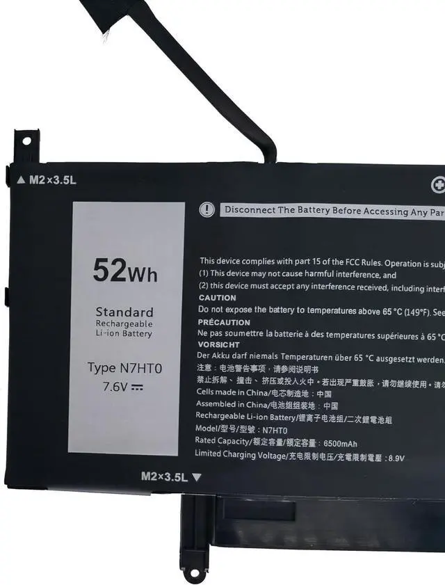 Battery Type: Li-ion; Voltage: 7.6V; Capacity: 52Wh/ 6500mAh/ 4-Cell.