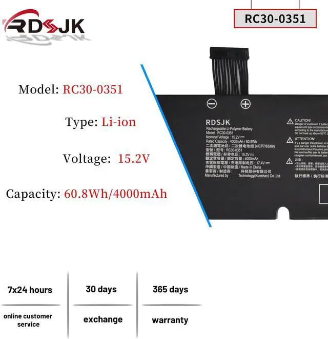 Battery Type: Li-ion; Voltage: 15.2V; Capacity: 4000mAh/60.8Wh; Color: Black