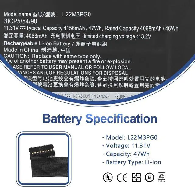SpecificationVoltage: 11.31V. Capacity: 47Wh 4156mAh. Battery Type: Li-Polymer. Condition: Brand new, from durable materials, top circuit boards and smart chip