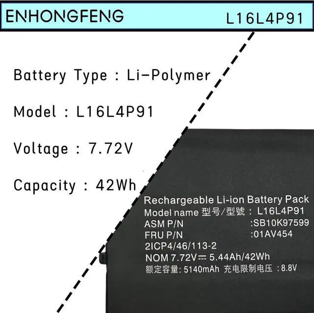 Compatible Part Number: L16L4P91 SB10K97599 01AV454 L16M4P91 01AV453