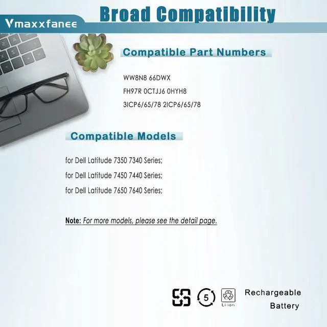 WW8N8 battery Compatible laptop Models for for Dell Latitude 7440 Series laptop; for Dell Latitude 7450 Series laptop;Dell Latitude 7340 Series laptop; for Dell Latitude 7350 Series laptop; for Dell Latitude 7640 Series laptop; for Dell Latitude 7650 Series laptop.