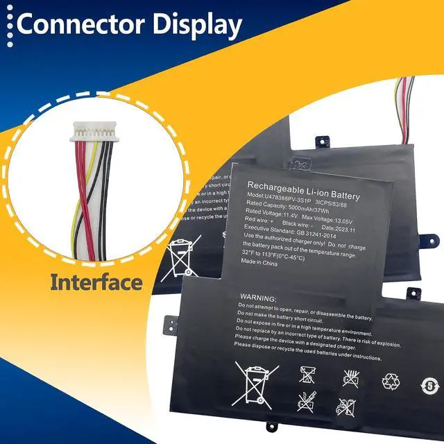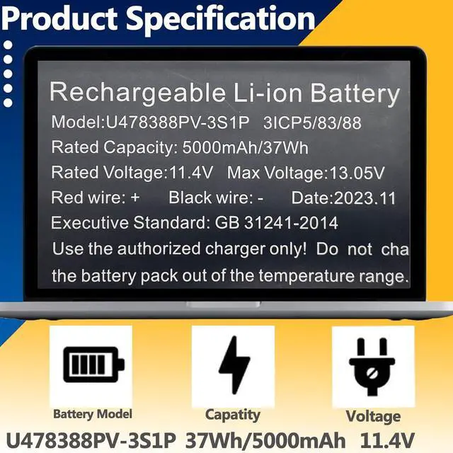 SpecificationsModel: U478388PV-3S1P Capatity: 37Wh/5000 Voltage:11.4V Battery type: Rechargeable Battery Color: Black 100% brand New from Manufacturer.
