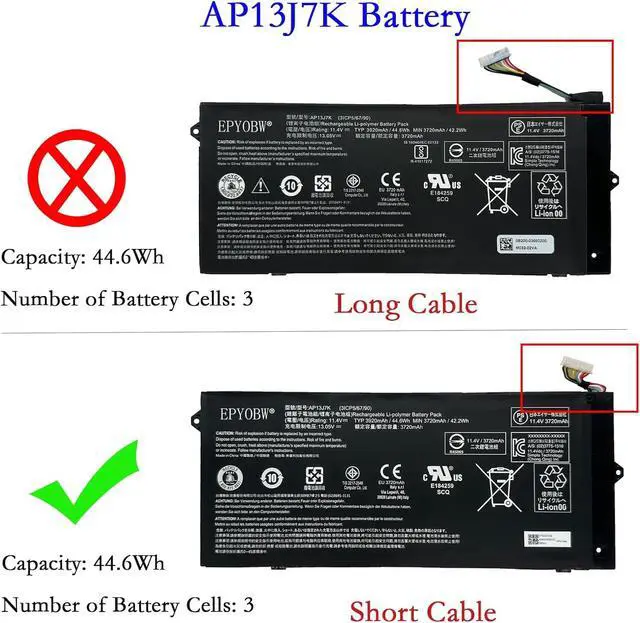 Specifications Battery Model: AP13J7K / Voltage: 11.4V / Capacity: 44.6Wh 3920mAh 3-Cell / Color: Black / Condition: Brand New.